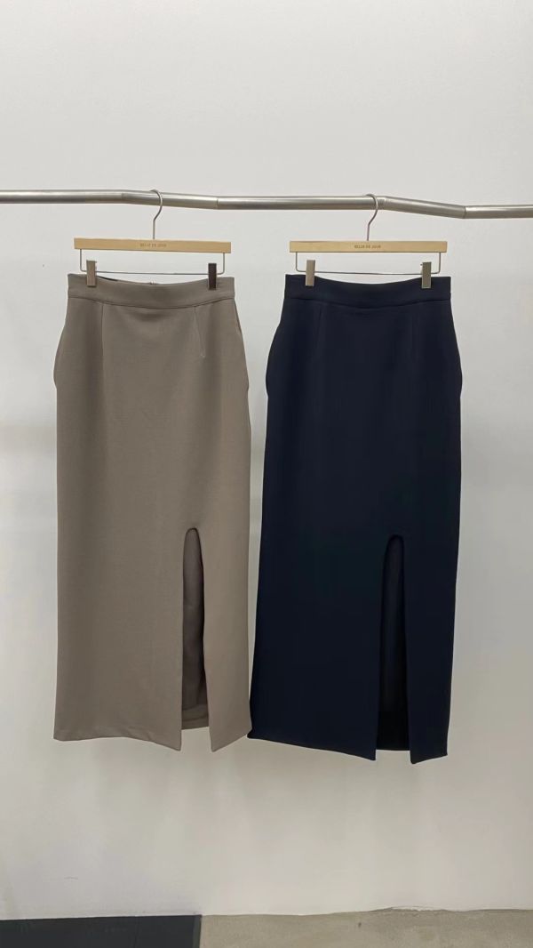 簡單的前側開衩窄裙,高腰、長裙比例拉伸腿部比例,可以搭配
